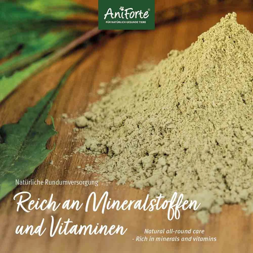 Das leichtdosierbare Feingranulat kann einfach unter das tägliche Futter gemischt werden. Durch den unvergleichlichen Geschmack nach frischen Kräutern erfreut sich unser Produkt an einer hohen Akzeptanz.