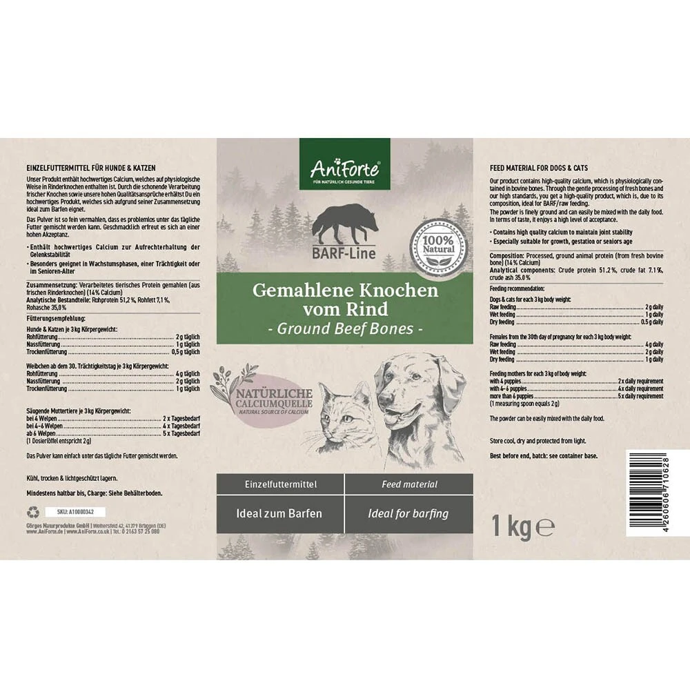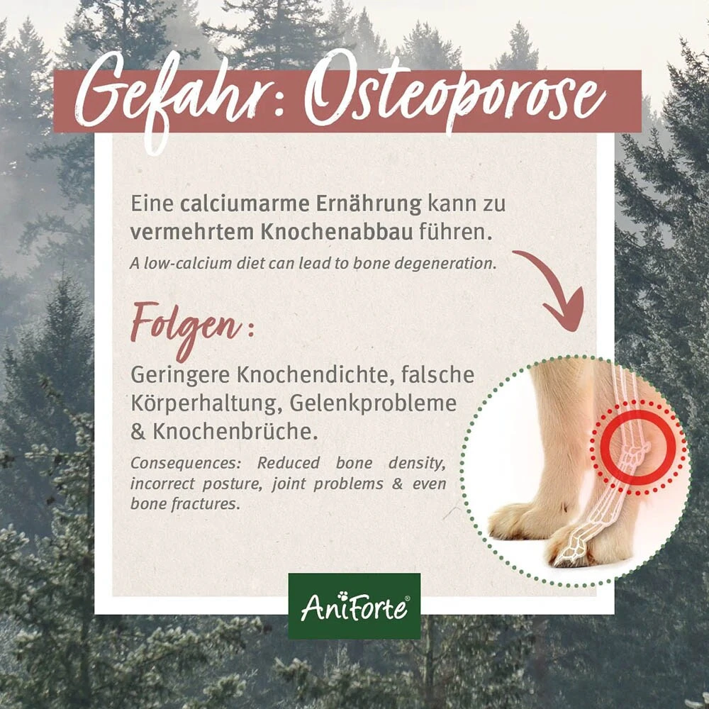 AniForte® Gemahlene Knochen kann dazu beitragen, die natürliche Knochenstruktur Ihres Vierbeiners zu unterstützen. Das in den Knochen enthaltene Calcium kann die Gesunderhaltung bewahren und den Knochenabbau verlangsamen.