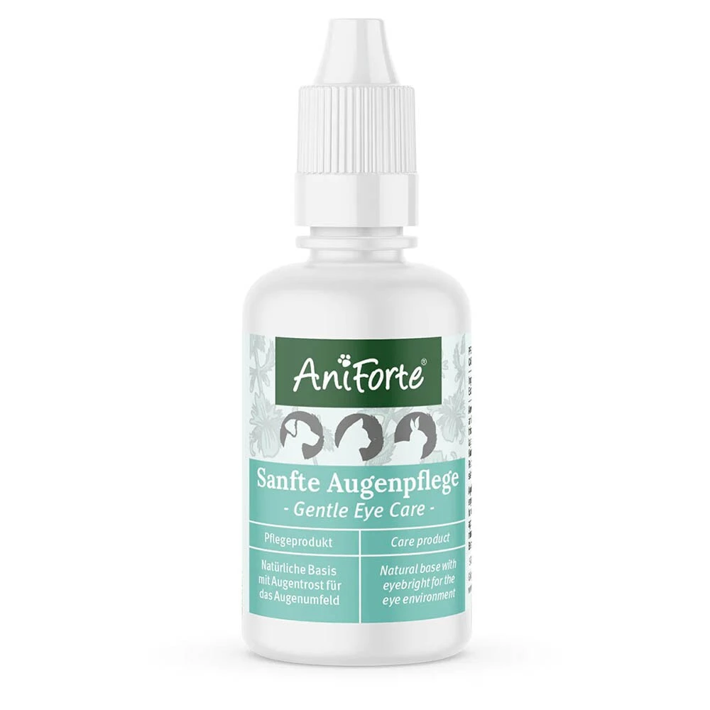 Die Zusammensetzung der AniForte® Sanfte Augenpflege basiert auf naturidentischen Stoffen und ist speziell auf die Augen von Tieren abgestimmt. Besonders geschätzt wird die gute Verträglichkeit dieses Produktes.