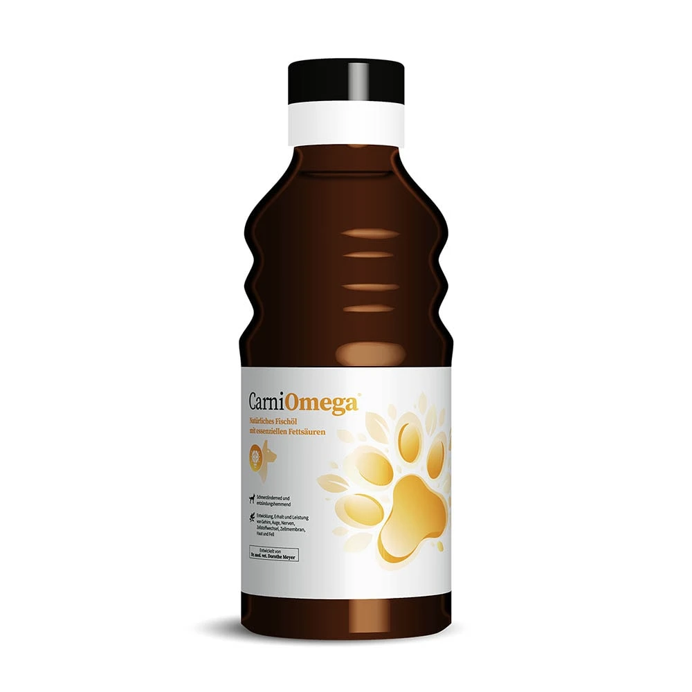 Hunde- und Katzenwelpen bis zum Alter von 14 Lebenswochen erhalten täglich maximal 0,25 ml CarniOmega- 3-Öl je kg Körpergewicht.