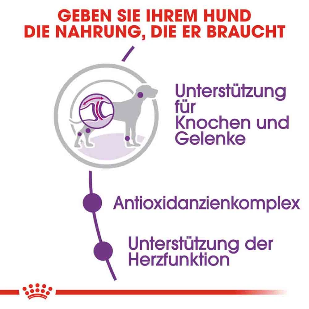 Bei großen Hunden ist die Versorgung mit wertvollen Nährstoffen, die zur Erhaltung gesunder Knochen und Gelenke beitragen, besonders wichtig, da diese durch ihr eigenes Körpergewicht stark beansprucht werden. Deshalb enthält ROYAL CANIN Giant Adult Glucosamin und Chondroitin, welche die Gesundheit von Gelenken und Knochen unterstützen.