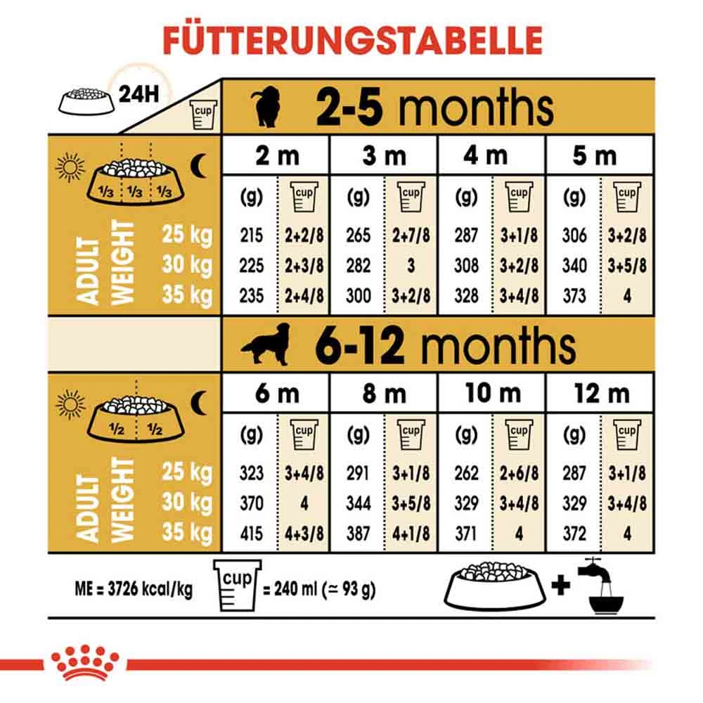 | Lebensmonat | Endgewicht 25kg | Endgewicht 30kg | Endgewicht 35kg |