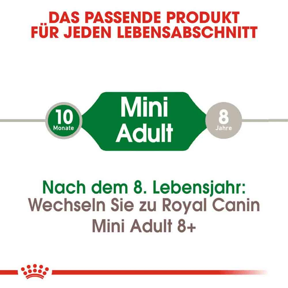 ROYAL CANIN Mini Adult ist für kleine Hunde ab 10 Monaten mit einem Gewicht von bis zu 10 kg geeignet und wurde speziell auf die Bedürfnisse kleiner Hunde abgestimmt.