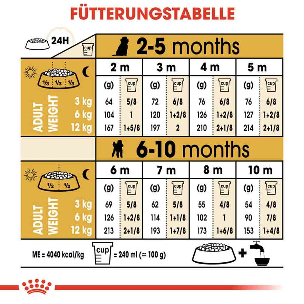 ROYAL CANIN Poodle Puppy wurde speziell für Pudel Welpen bis zu 12 Monaten entwickelt. Dank eines exklusiven Antioxidanzienkomplexes (einschließlich Vitamin E) hilft das Welpenfutter dabei, die körpereignen Abwehrkräfte zu unterstützen, während sie sich allmählich entwickeln. Weiterhin enthält ROYAL CANIN Poodle Puppy eine spezielle Kombination von Nährstoffen mit hochwertigen Proteinen (L.I.P.), die speziell für ihre hohe Verdaulichkeit ausgewählt wurden.